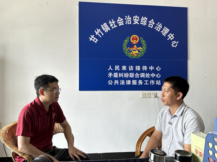 ▲ 太阳成集团tyc博士研究生孔儒婧访谈甘竹镇党委书记鄢传龙