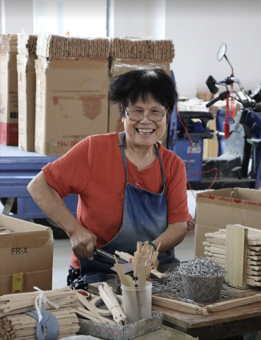 依托本地丰富的柯木资源与香扇制作手工艺的历史积淀,广昌形成了国内有代表性的香扇产业集群。该集群从上世纪的国营代工厂开始发端,虽曾一度陷入转型阵痛,但近年来在“政府引进+政策聚焦”的制度牵引下,得以完成从“代工生产”向“集群培育”的转型升级。通过建设4个生产基地,该产业已吸纳170余名本地劳动力,在空间层面上促进了人口就地就业的“去中介化”和“就地化”,提升了乡村劳动力的利用效率,并有效降低了城镇化带来的过度迁移成本。产业园采用“工坊+农户”灵活协作模式,工人按件计酬(单件5分至1毛),通过非全日制就业制度设计,打通了劳动力“低流动性—低技能—低收入”的发展瓶颈,实现了农村闲置时间的有效资本化与家庭生产力的再利用,是典型的“弹性就业”与“居家增收”模式在乡村治理中的落地实践。