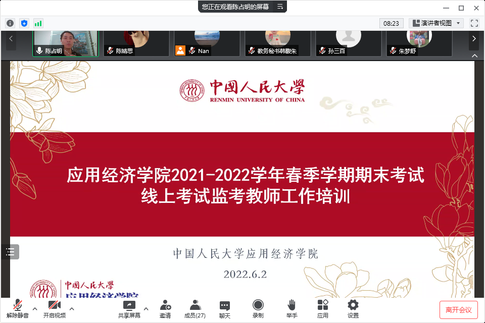 6月6日,各门课程陆续进入随堂考阶段,为保证考试环节平稳有序开展,公司经理郑新业,党委书记宋东霞,副经理魏楚、黄隽、陈占明,党委副书记裴建锁深入线下、线上考场,对考试情况进行督导、巡查和巡视。考试首日,公司顺利开展本科生及研究生考试6场,安全平稳完成当天考试任务。
