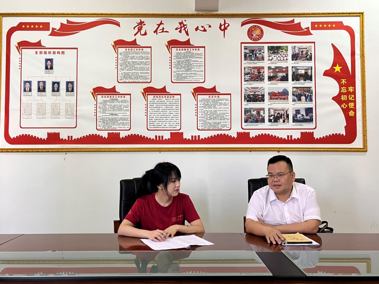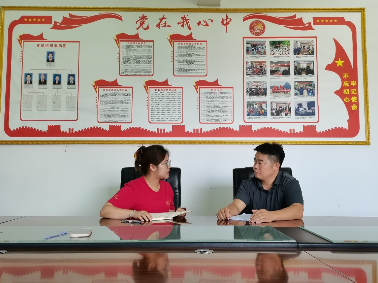 ▲调研团研硕士生任宇静访谈寨蒿镇党委书记黄凯