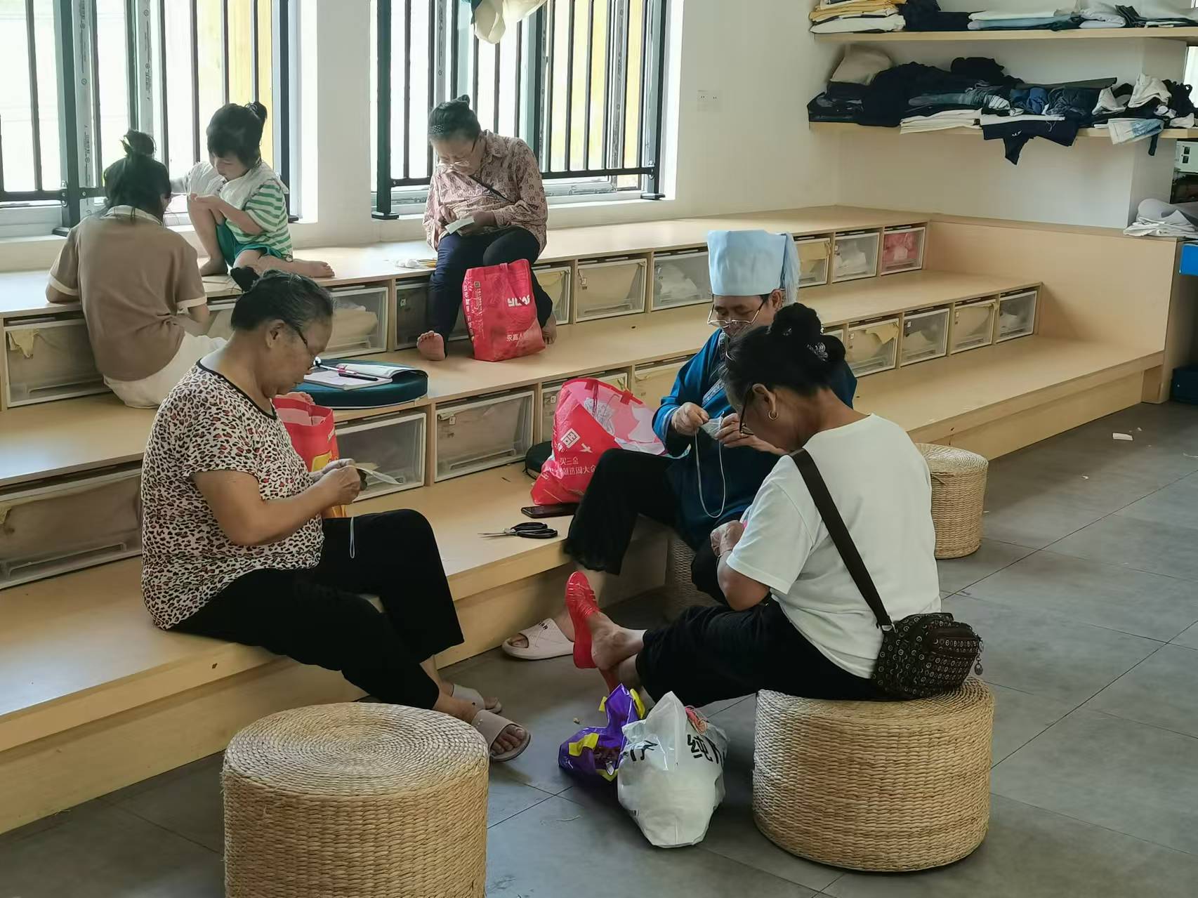 ▲特和社区母亲回家手工坊的工人们正在刺绣