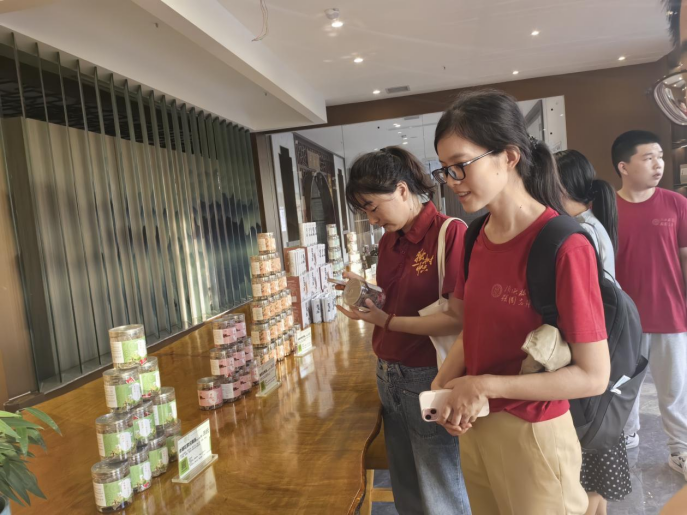 7月24日下午,调研团前往广西茶叶展示中心。茶叶展示中心位于昭平县六堡茶农旅示范园区中心,因储存了大量的茶叶产品和原茶,也被称为“六堡茶仓”。在展示中心一侧,坐落着广西昭平茶科技小院,与北京大学、中国农业大学等高等院校建立校企合作,专家学者们为茶叶优良育种提供技术支持。