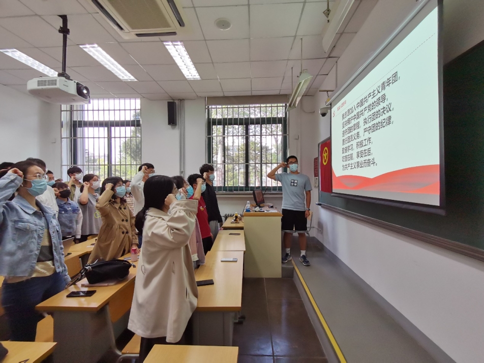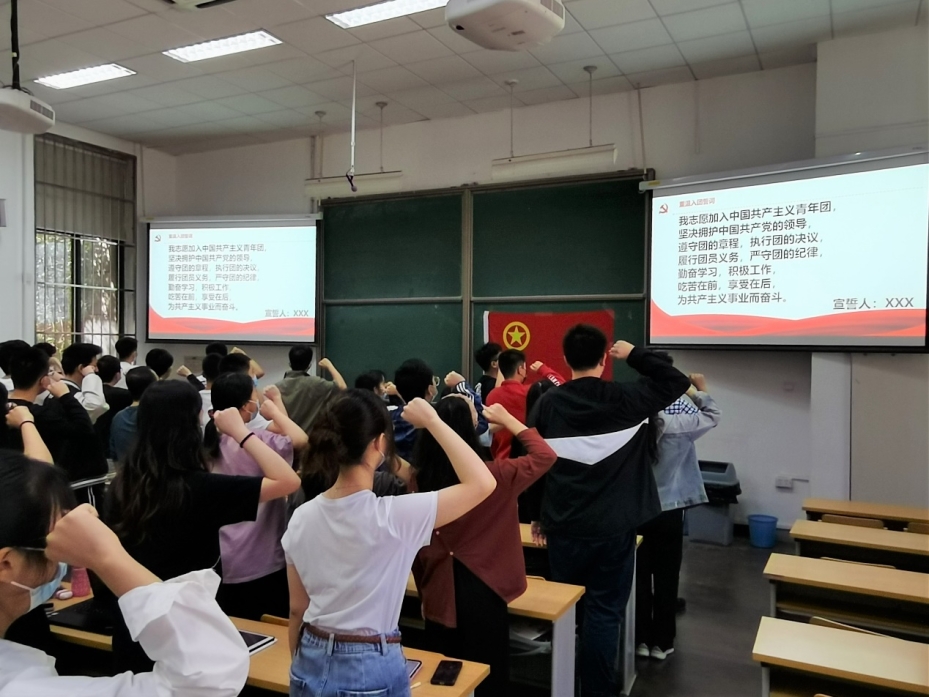 在中国共产主义青年团成立一百周年之际,太阳成集团tyc各团支部开展主题团日活动,为本学期新发展团员举办入团仪式,新老团员重温入团誓词。团员们在团旗下、誓词中感悟入团初心。大家纷纷表示,庄严的誓词提醒着青年要牢记党的教诲,立志民族复兴,不负韶华、不负时代、不负人民,在青春的赛道上奋力奔跑,争取跑出当代青年的最好成绩。