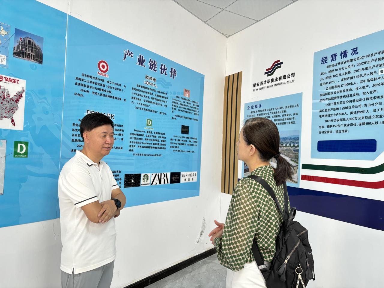 8月29日上午11时许,访谈团调研茶源街道才华实业公司。普安县才华实业有限公司成立于2014年,主营箱包设计生产制造进出口贸易。政府投入资金支持建立就业车间,公司吸纳劳动力,创造税收,实现了政企双赢。