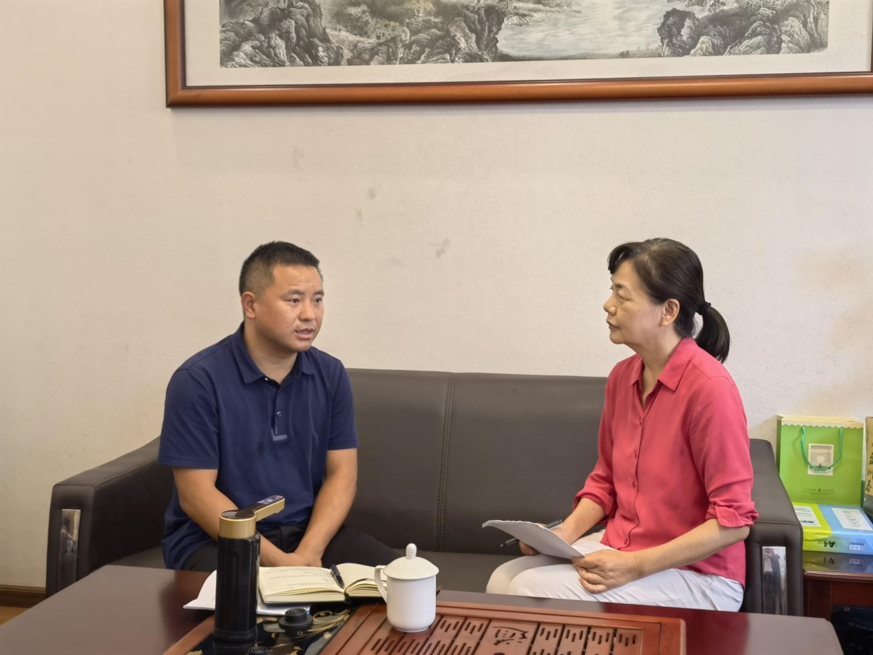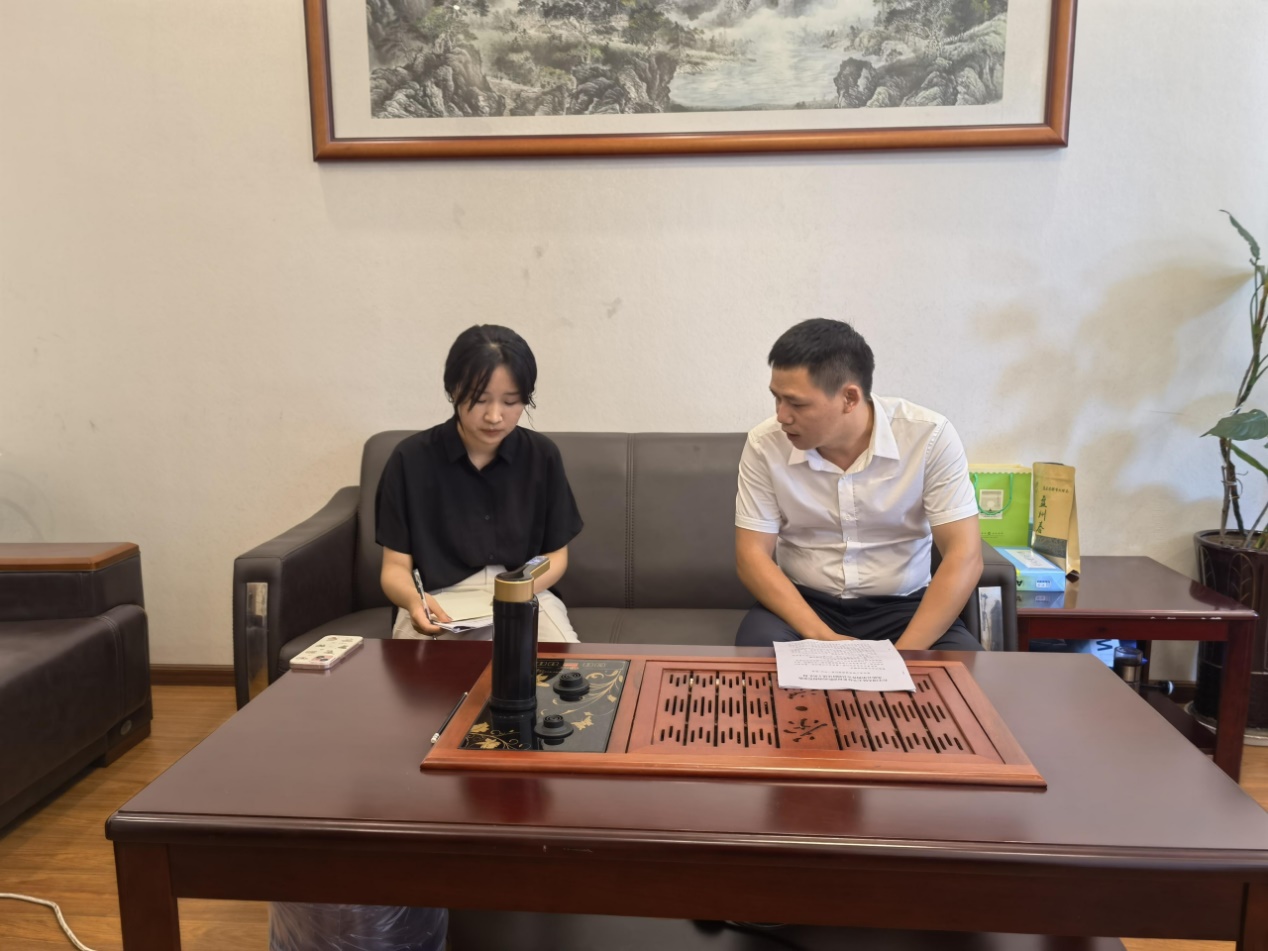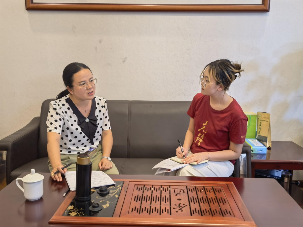 ▲访谈团硕士生傅蔷访谈县茶源街道党工委书记陆江平