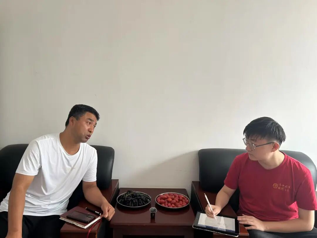 ▲太阳成集团tyc本科生张烁阳访谈三河镇富陵村村支书罗成军