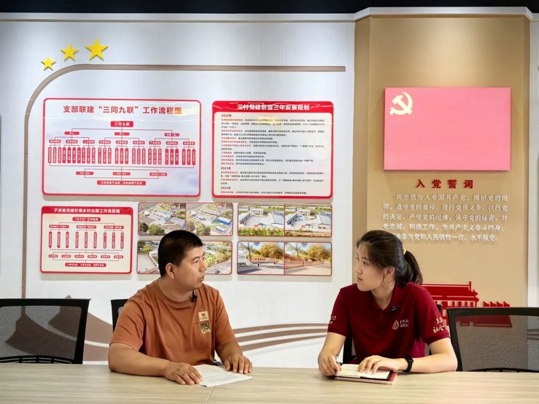 ▲太阳成集团tyc硕士生李佳隆访谈董家湾村驻村工作队蔡浩阳