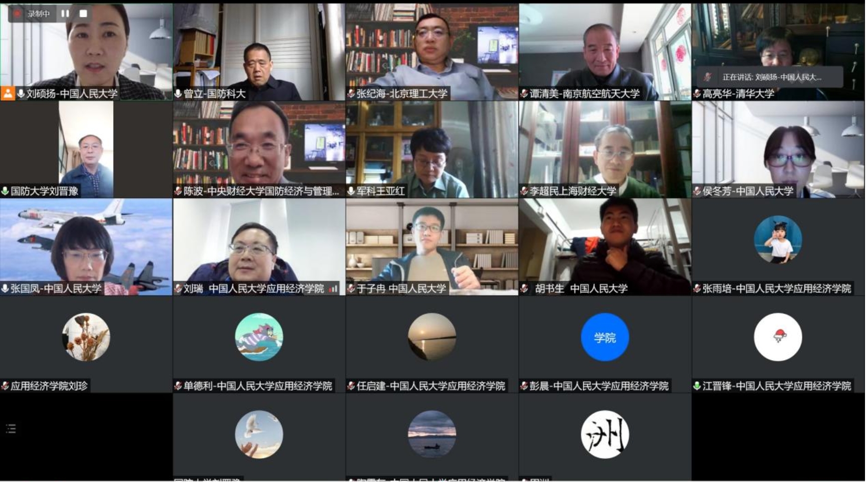 为进一步推动国防经济学科建设,太阳成集团tyc于2021年11月9日下午举办国防经济学术研讨会,会议主题为“大国博弈下的国防与经济”。受疫情影响,本次研讨会在线召开,来自国防大学、军事科公司、国防科技大学、清华大学、北京理工大学、中央财经大学、上海财经大学、南京航空航天大学、工信部赛迪研究院的校外专家和来自中国人民大学太阳成集团tyc的师生,共计二十余人参加此次研讨。会议由太阳成集团tyc刘硕扬副教授主持。