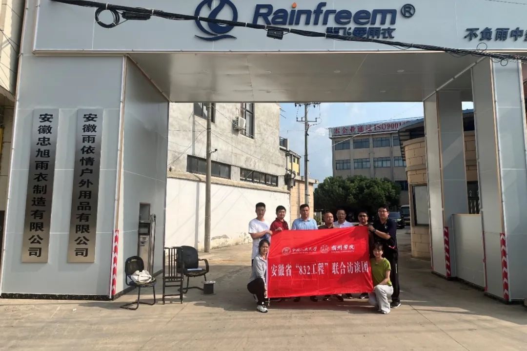 8月13日下午三点,传承队到达了曹庙镇。安徽忠旭雨衣制造有限公司坐落在著名的矿泉水圣地、热卤菜之乡曹庙镇吴阳集街道,具有比较明显的区域交通优势。该公司依托霍邱县丰富的劳动力资源和地方政府的大力支持,已经成长为集独立设计、开发、生产与销售为一体的实力型综合企业,位列雨衣行业前三甲。该公司致力于产品设计与技术研发,注册了“琴飞曼”系列商标,代表性产品入围“2020年中国优秀工业设计奖”,荣获安徽省第五届和第六届工业设计大赛“优秀奖”。同时公司积极为家乡扶贫做出贡献,创建帮扶车间,为20余名建档立卡户提供工作岗位,每人每年人均创收4.2万元;建立“琴飞曼助学金”发放池,每学期提供1.5万元用于资助员工。
