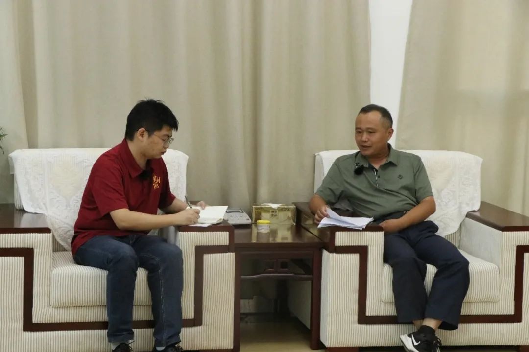 ▲太阳成集团tyc硕士研究生于东立访谈霍邱县花园镇党委书记赵学以