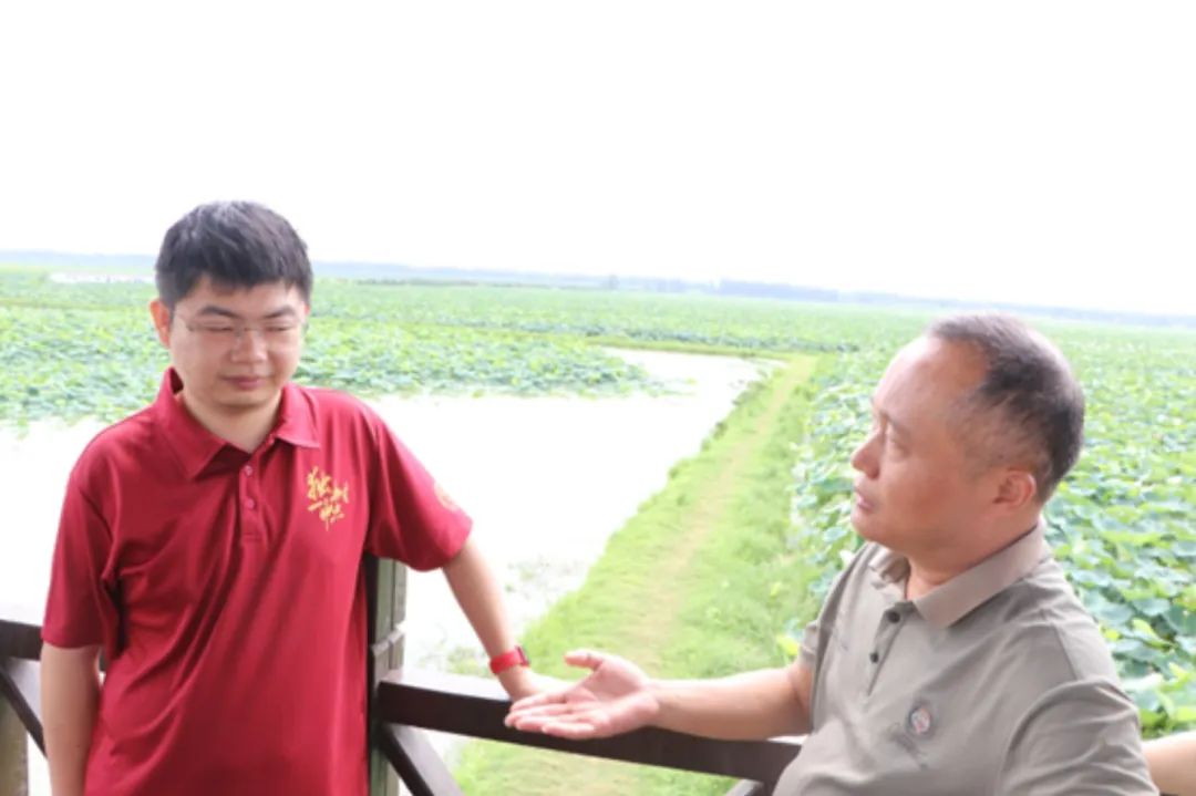 传承队到达城西湖乡万亩莲藕种植基地。城西湖乡扬长避短大力发展适应性产业,2016年招商引进安徽徽莲农业科技发展有限公司,以新鲜莲藕的种植销售及藕制品的加工销售为主,目前种植面积达2.3万亩。公司坚持“公司+基地+农户”的产业化经营模式,探索出“土地流转+提供就业+企业帮扶+旅游带动”的助农增收模式,不仅带动4000多户农户实现增收,同时也成功实现了三产融合。