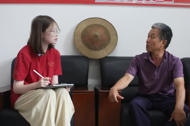 ▲本科生喻薇访谈青杠坝村党支部书记冷朝刚(党的二十大代表)