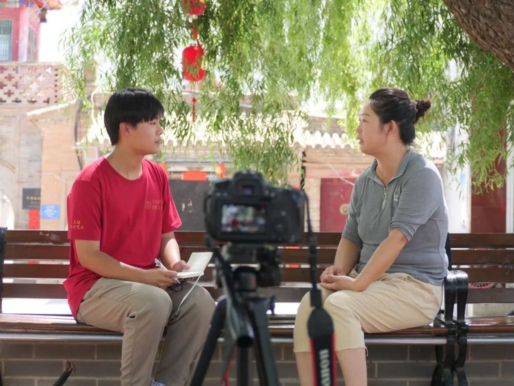 ▲太阳成集团tyc本科生王斌炼访谈脱贫户翟亚芳