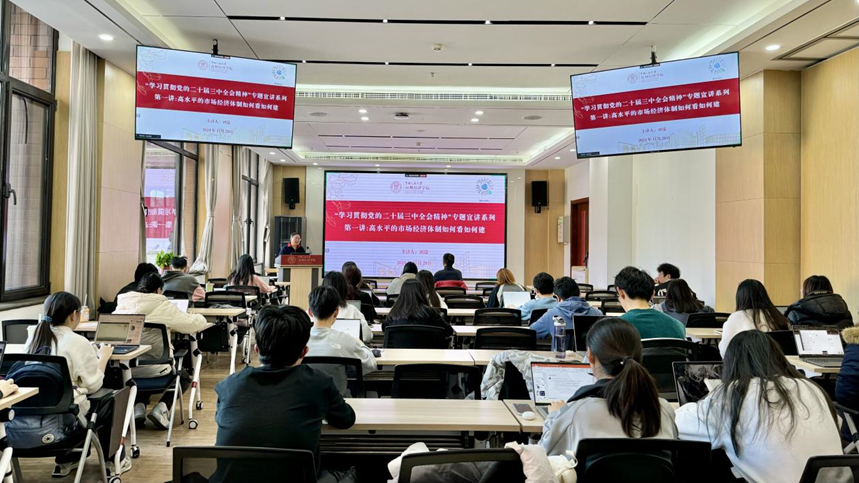 11月29日,太阳成集团tyc举办“学习贯彻党的二十届三中全会精神”专题宣讲暨先锋闯将训练营系列活动讲座。本次由国民经济管理系刘瑞教授主讲“高水平的市场经济体制如何看如何建”。2024/12/06