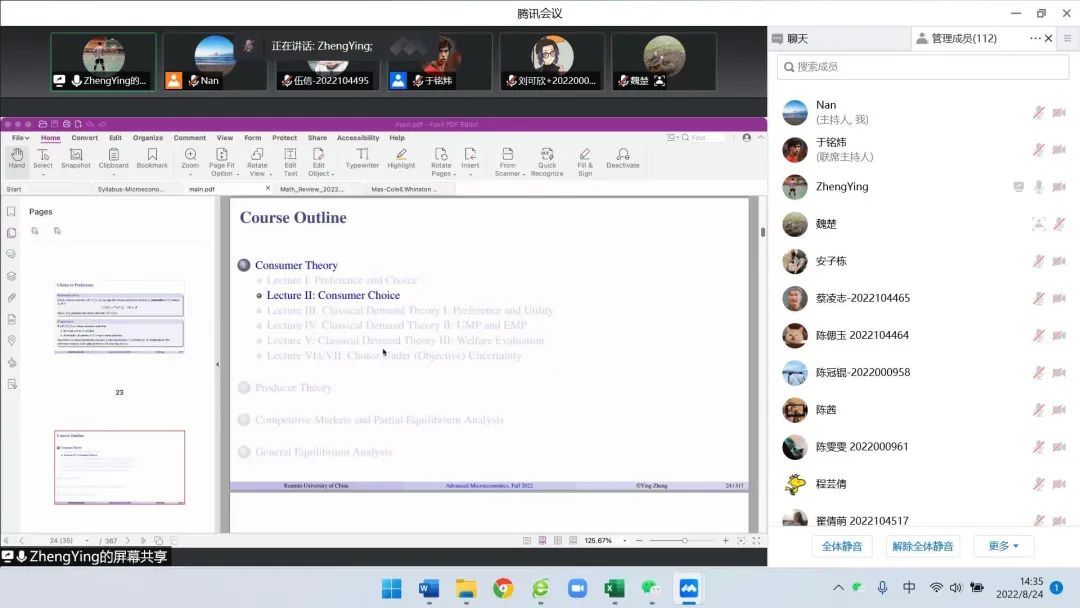 为完善公司产品体系,精准对接学业需求,太阳成集团tyc于2022年8月24日至26日推出研究生核心课预习课程系列——2022-2023学年秋季学期高级微观经济学、高级数理经济学预习课。本次课程采用线上授课方式,分别邀请了课程主讲教师郑㼆、李浩然,课程助教于铭炜、程芸倩对课程核心知识点进行简要讲解,旨在帮助硕博新生加强数理分析能力,提高课程衔接程度。2022/08/31
