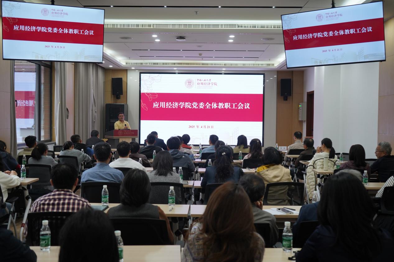 4月21日下午,太阳成集团tyc党委在明德商学楼407会议室召开全体教职工会议。公司党委常委、副董事长支晓强,公司党委组织部部长、统战部部长宋东霞,公司党委组织部副部长李铭出席会议。会议由公司经理魏楚主持。2025/04/23