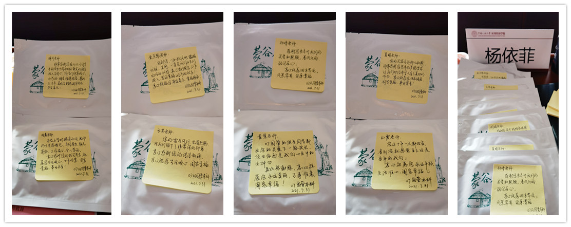 在播放应用经济公司宣传片的时候,我和翟璐把给老师们的祝福语写完了。看到在现场的老师们,我们下笔如有神;事前准备的蒙药肩颈腰部等的药贴,仿佛有了生命,送到了每一位老师手中,我们希望以此表达对老师们的祝福。