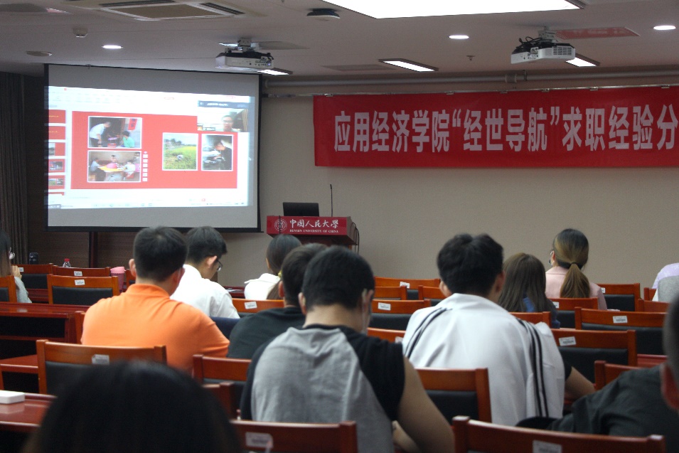 紧接着,唐山中师兄向大家分享了求职心得与基层工作体会。他结合自己的选调备考过程,简明扼要地从明确目标,准备充分和沉稳心态三个方面分享了自己的备考经验。他还结合自己扎根基层的所见所闻所感,向同学们阐释了基层工作之于个人成长,人民幸福,祖国发展的重要意义,鼓励更多的同学到祖国最需要的地方去,贴近人民,锻炼自我。